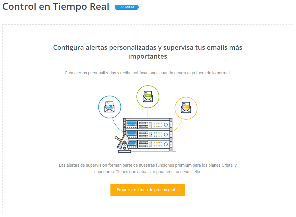 Si dispones de los planes Cristal o superiores, podrás configurar alertas personalizadas para estar enterado de cualquier problema que pueda surgir en el envío de tus campañas.