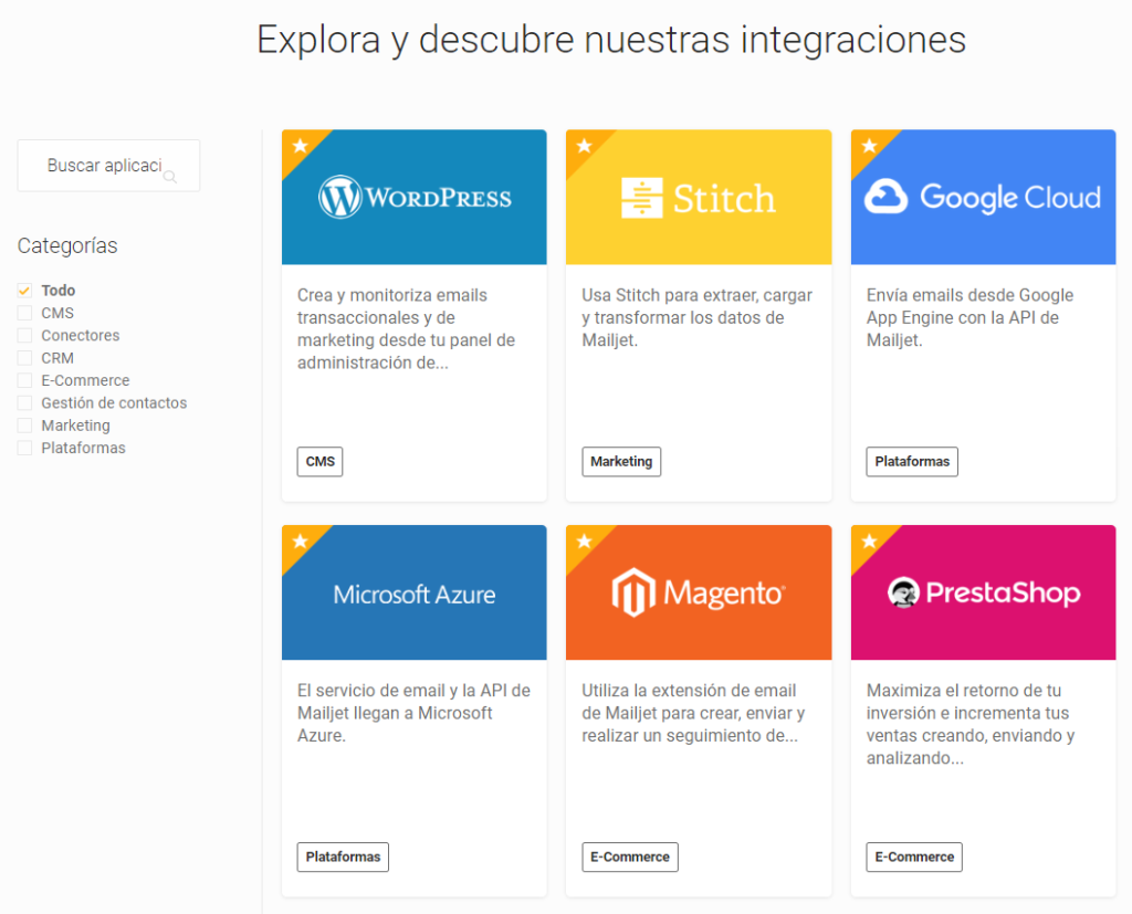 Echa un ojo a todas las que tienes a tu disposición: https://es.mailjet.com/integrations/#all